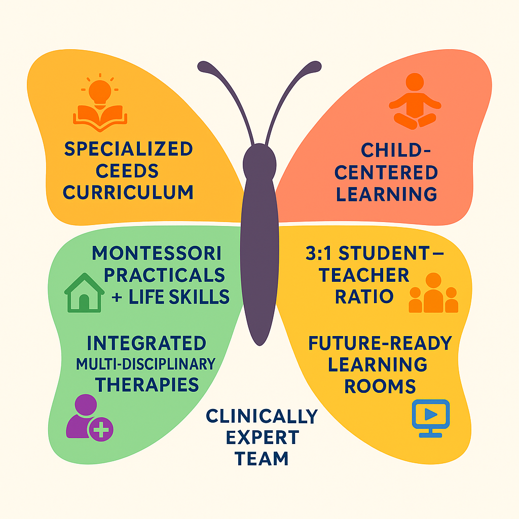 At Sparkles, we guide each child to discover their own unique spark. We believe every child carries a special light waiting to be nurtured, understood, and celebrated. Our school, inspired by the CEEDs values, is the heartfelt dream of three compassionate women, led by Ms. Minna Mathew, an RCI-recognized clinical psychologist. We share a powerful belief that every child, no matter their challenges, deserves a nurturing environment to grow, learn, and thrive.